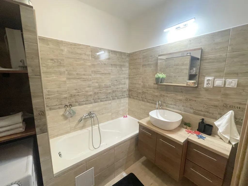 Külön fürdő és WC:** A fürdőszoba és a WC külön helyiségben található, így a napi rutin kényelmesen és gyorsan kezelhető.